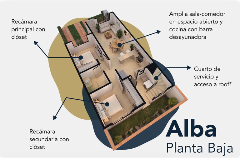 Cuenta con dos recamaras, baño compartido, sala, comedor y cuarto de servicio
