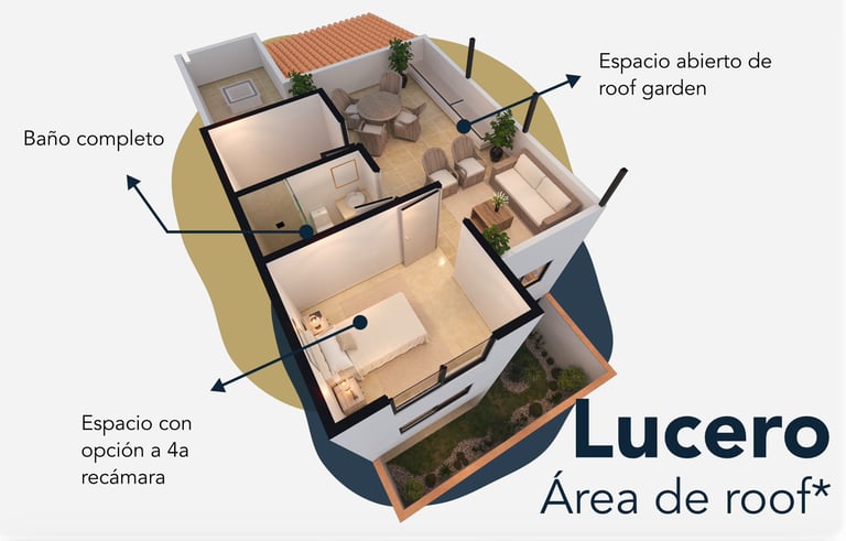 Espacio abierto con pergola opcional, baño completo una cuarta recamara